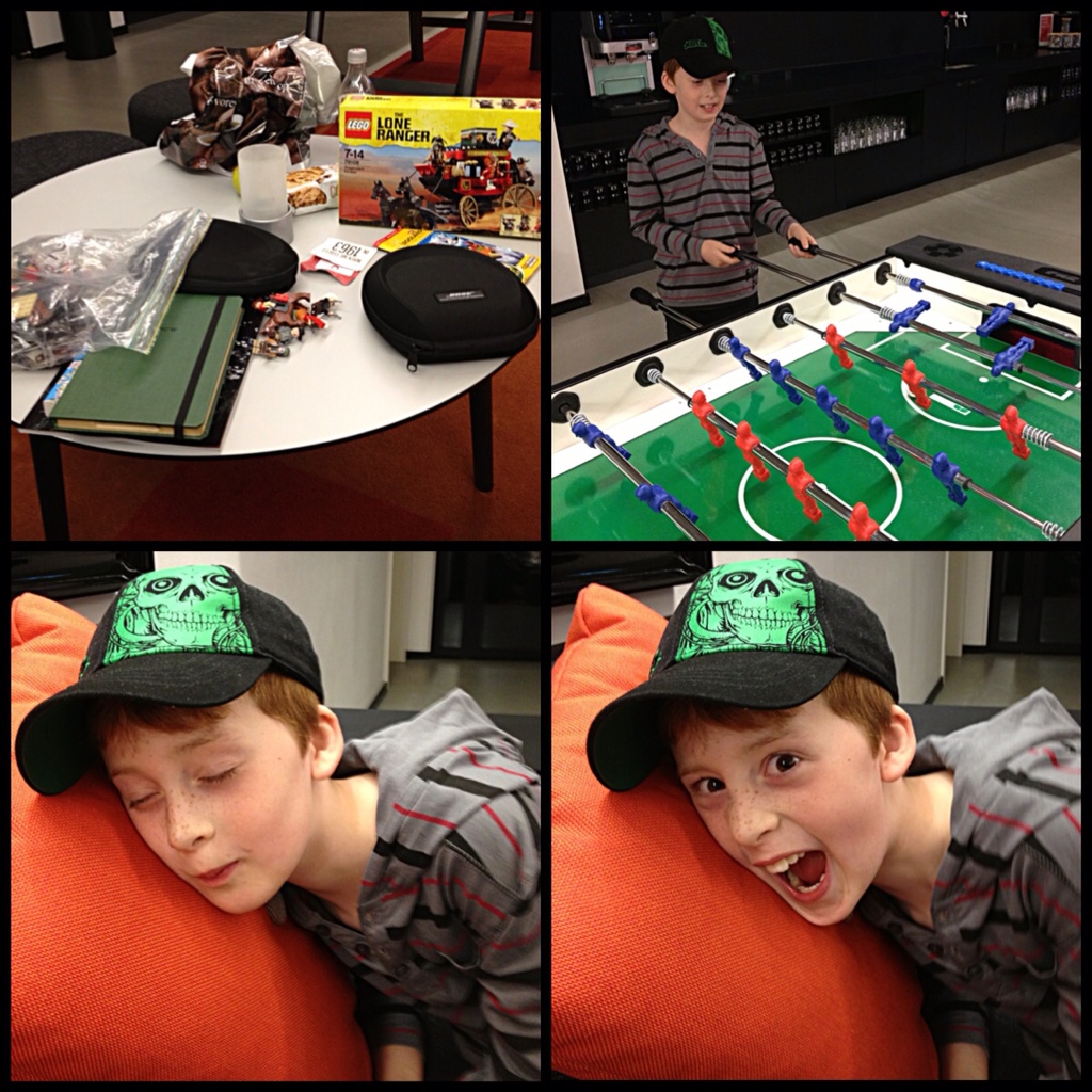 Right now we are set up in a cosy corner of the lobby of our hotel (since our room is pretty compact). Oliver is building his Lego in between playing on a hotel computer and the foosball table. We have drinks and snacks and books and iPads and a plan to chill out until it's time for an early dinner.
