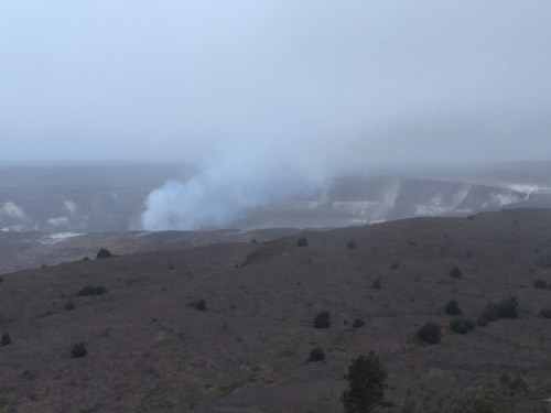 Next we drove to the Thomas Jagger Museum, which overlooks the Kīlauea Caldera. We could see a plume of volcanic gas rising from the caldera, apparently from molten rock in a lava lake on the summit (which we could not see). We also could hear rumbles from the volcano. Similar to, but deeper and louder than thunder.