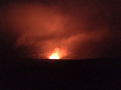 Finally in gathering darkness and increasing rain we returned to the lookout next to the Museum. The glow of the lava lake within the caldera lit the sky an eerie orange colour. It was an impressive sight! Perhaps the inspiration for the fires of Mordor? Here’s a link to a 24/7 webcam of the Kīlauea Caldera so you can see what we saw (unfortunately without the impressive rumbling).