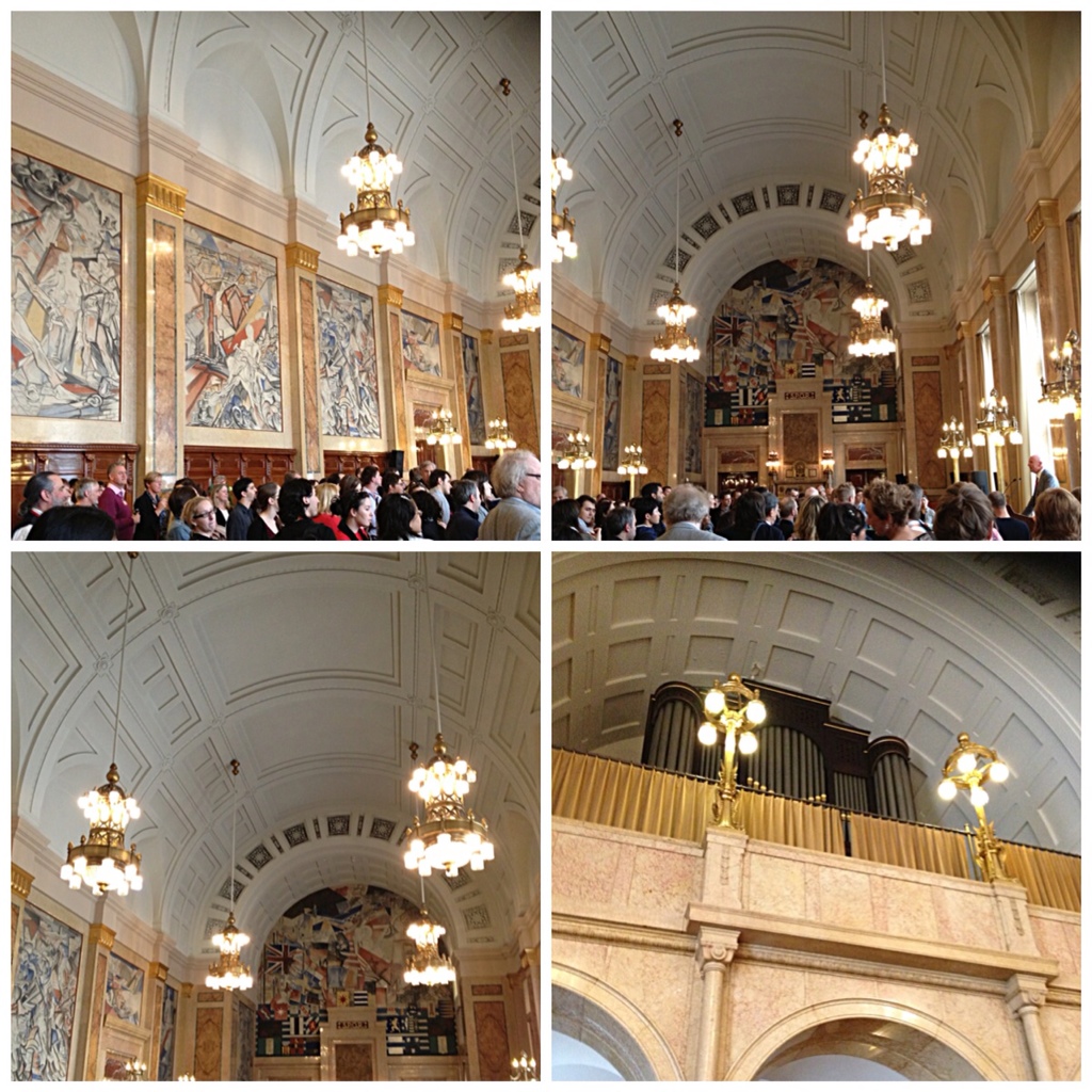 This evening we went to a reception at the Rotterdam City Hall, called Stadhuis. The City Hall, completed in 1915, is one of only two buildings that survived bombing by the Germans on 14th May 1940. On that day, German bombers razed to the ground almost the entire old city, much of it dating from medieval times. Here is what Wikipedia says about the Rotterdam Blitz: