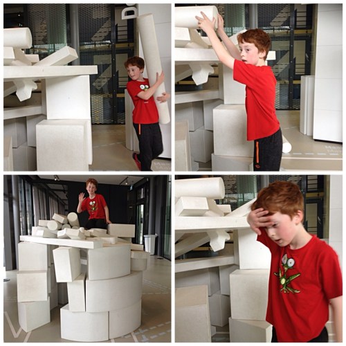 Whatever they meant, Oliver loved them, running from one display to the next, pointing things out. At the end he played for ages in a large building space. Here he used giant foam blocks to create his own architecture.