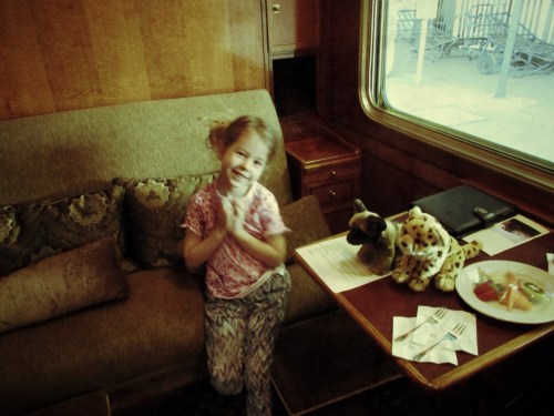 Most of Oliver’s clothes were in neutral colours: grey, green, blue. Most of Louisa’s clothes were in purple, lilac, green. We didn’t especially look for “safari” clothes so everything could be worn again back in Sydney.